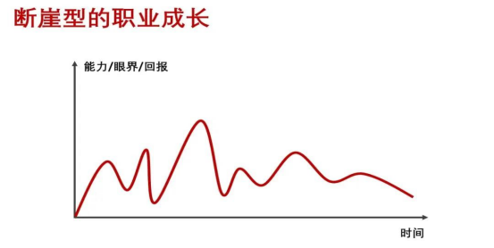 這一類職業(yè)發(fā)展路徑,我稱之為“斷崖式”成長(zhǎng)(如下圖):