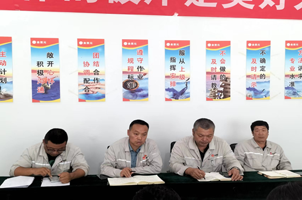 會上,各主管副經理和采鹵副總工程師從安全管理、檢修質量、檢修進度、現場管理、人員激勵等方面做出要求,并表態(tài)在自己分管的檢修工作范圍內,會安全高效完成檢修任務,確保檢修期間無安全環(huán)保事故發(fā)生。