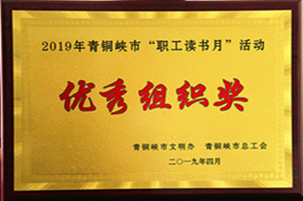 集團(tuán)公司工會(huì)取得優(yōu)異成績(jī),榮獲2019年青銅峽市“職工讀書月”活動(dòng)優(yōu)秀組織獎(jiǎng)。